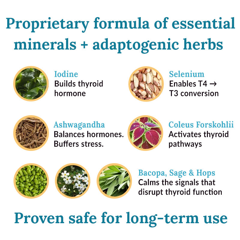 Unique dual-support formula boosts thyroid function + overall hormonal balance. Helps relieve the full range of symptoms of underactive thyroid. Proven safe for long-term use.