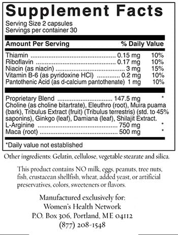 - L-Arginine — this amino acid supports nitric oxide synthesis, resulting in blood vessel relaxation, supporting vaginal blood flow, sensation and responsiveness to stimulation.