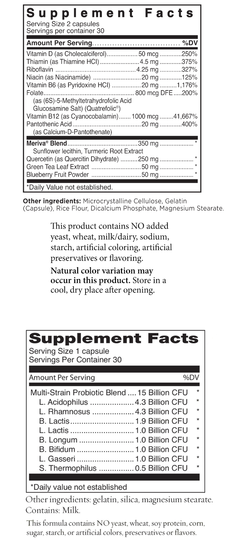 - Curcumin as Meriva® — a powerful antioxidant from the turmeric plant.