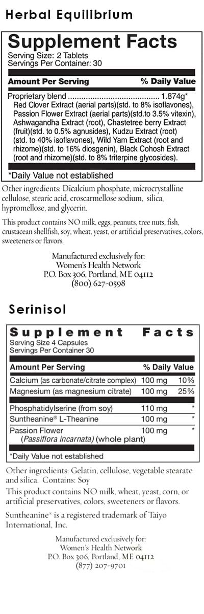 For irritability and anxiousness in perimenopause and menopause, our Calming Combo can provide the relief you need to relax and be more at ease every day. We’ve combined our landmark menopause symptom relief formulation, Herbal Equilibrium, with our calming adrenal-focused Serinisol, to relieve your toughest symptoms. With its ability to target emotional as well as physical symptoms, the Calming Combo has the power to help quiet hormonal imbalances so your days (and nights) are more peaceful and less stressful.