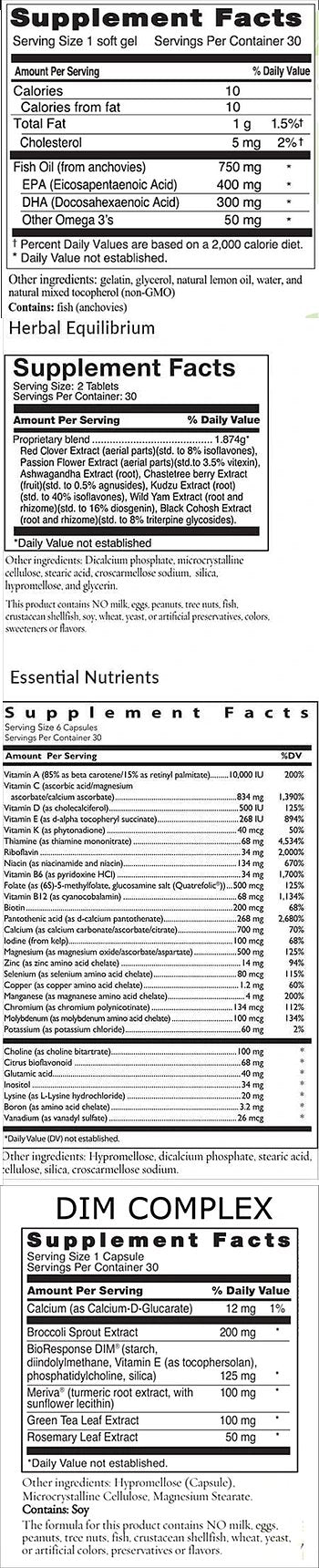 - Automatic resupply — After you complete your 30–day program, you’ll want to maintain the symptom relief and well-being you’ve achieved. For your convenience, we’ll automatically ship another 30-day supply of Essential Nutrients, Omega-3s, Herbal Equilibrium and DIM Enhanced each month. There’s never any purchase commitment and you may cancel at any time.