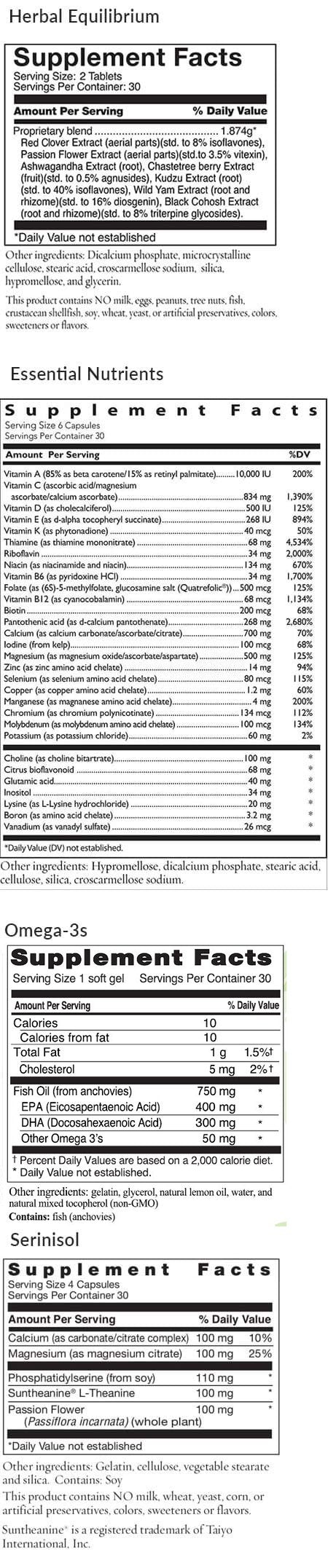 - Essential Nutrients — our popular multivitamin/mineral nutritional foundation, formulated just for women.