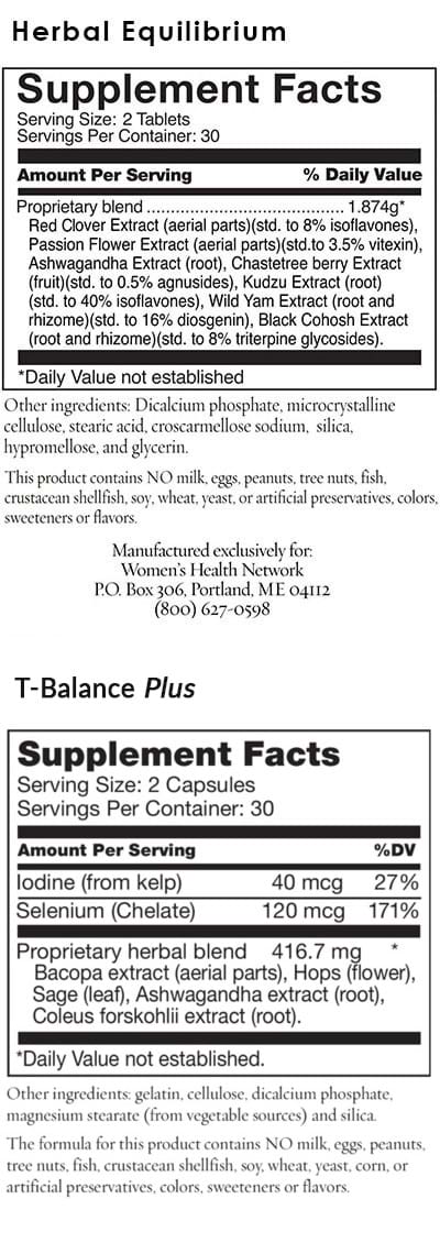 Thyroid issues can stay hidden until the midlife transition brings them to the surface with symptoms like low energy, fuzzy thinking, memory issues, reduced sex drive, hair loss, dry skin, brittle nails and unexplained weight gain. Many of these overlap with menopause symptoms, making it harder to know how to address the problem. Our Hormonal Thyroid Combo can help because it works for both reproductive and thyroid hormonal imbalances. Our landmark menopause formulation, Herbal Equilibrium helps resolve the root source of hot flashes, irregular periods, irritability and more while T-Balance Plus takes on those tough thyroid-related symptoms.