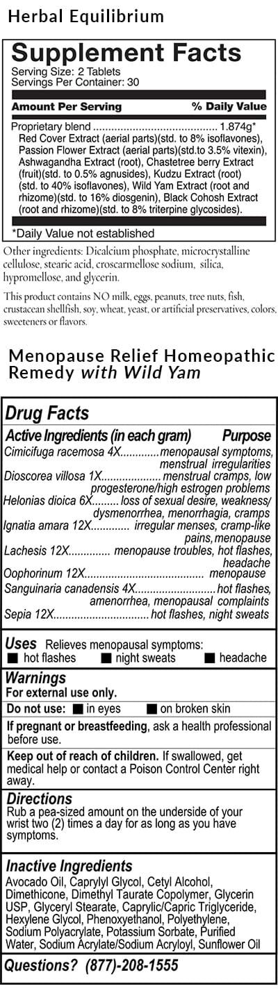 - Additional support:30-day supply of Menopause Relief Homeopathic Remedy with Wild Yam.