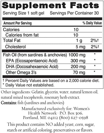 - Essential fatty acids: 30-soft gel supply of Women to Women's Omega-3 formula