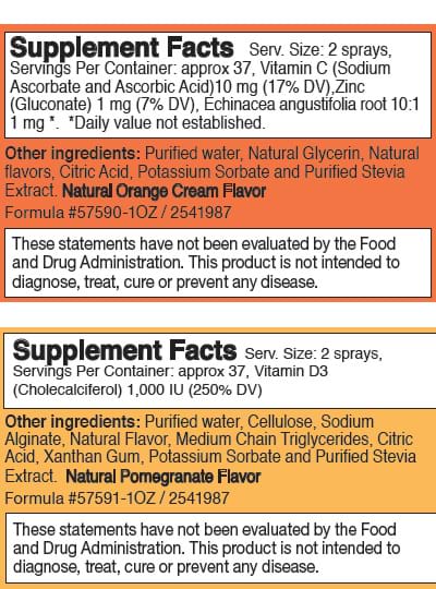 Ingredients for ~DISCONTINUED~ Spray Active Cold Season Package