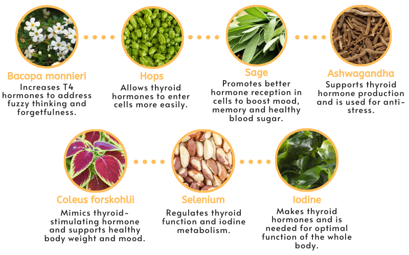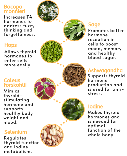 - Coleus forskohlii — a phytochemical in this extract mimics the effect of thyroid-stimulating hormone to enhance iodine uptake and thyroid hormone production. Studies show it has supportive effects on the immune system, body weight, and for depression.