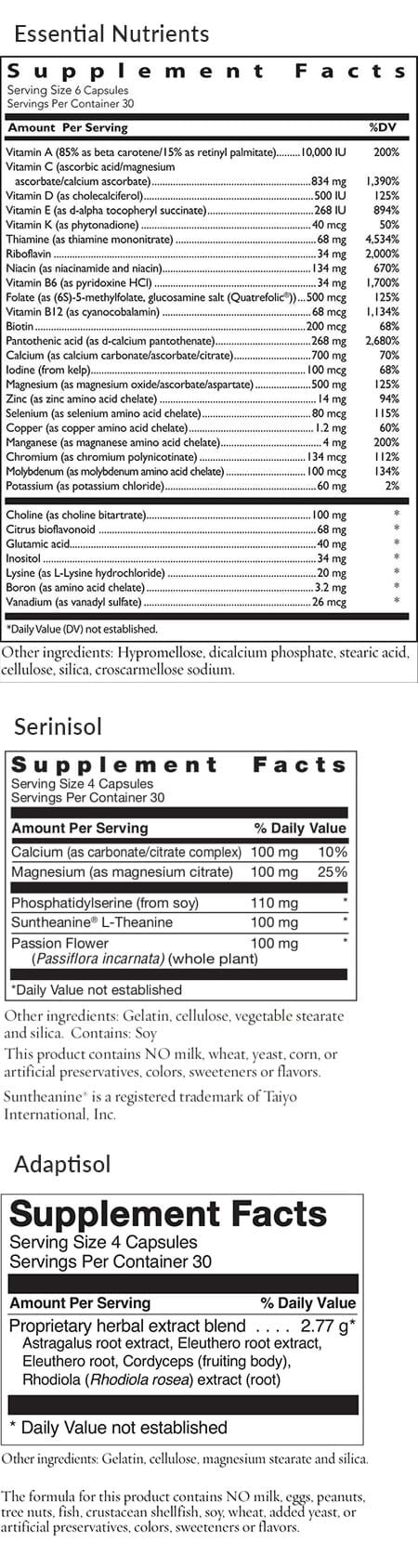 - Automatic resupply — maintain your results with a convenient monthly shipment of Essential Nutrients, Serinisol, and Adaptisol each month. There’s never any purchase commitment and you may cancel at any time.