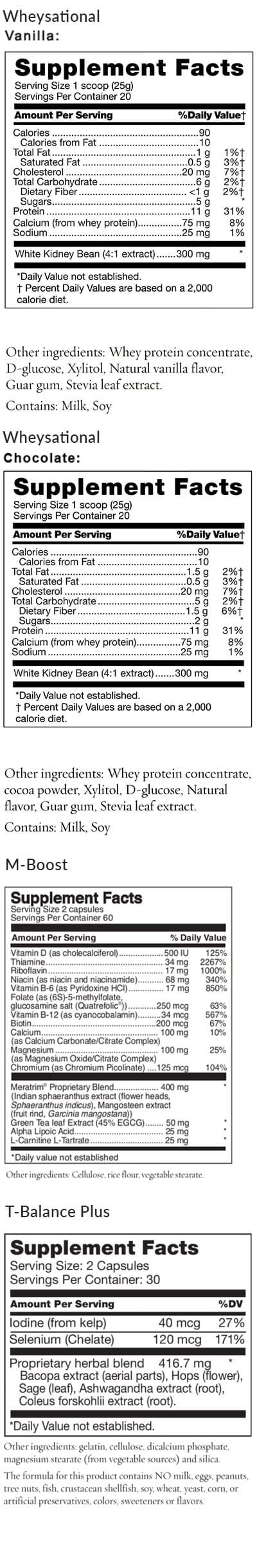 - Automatic resupply — maintain your results and momentum with a convenient monthly shipment of M-Boost, T-Balance Plus, and WheySational. There’s never any purchase commitment and you may cancel anytime.